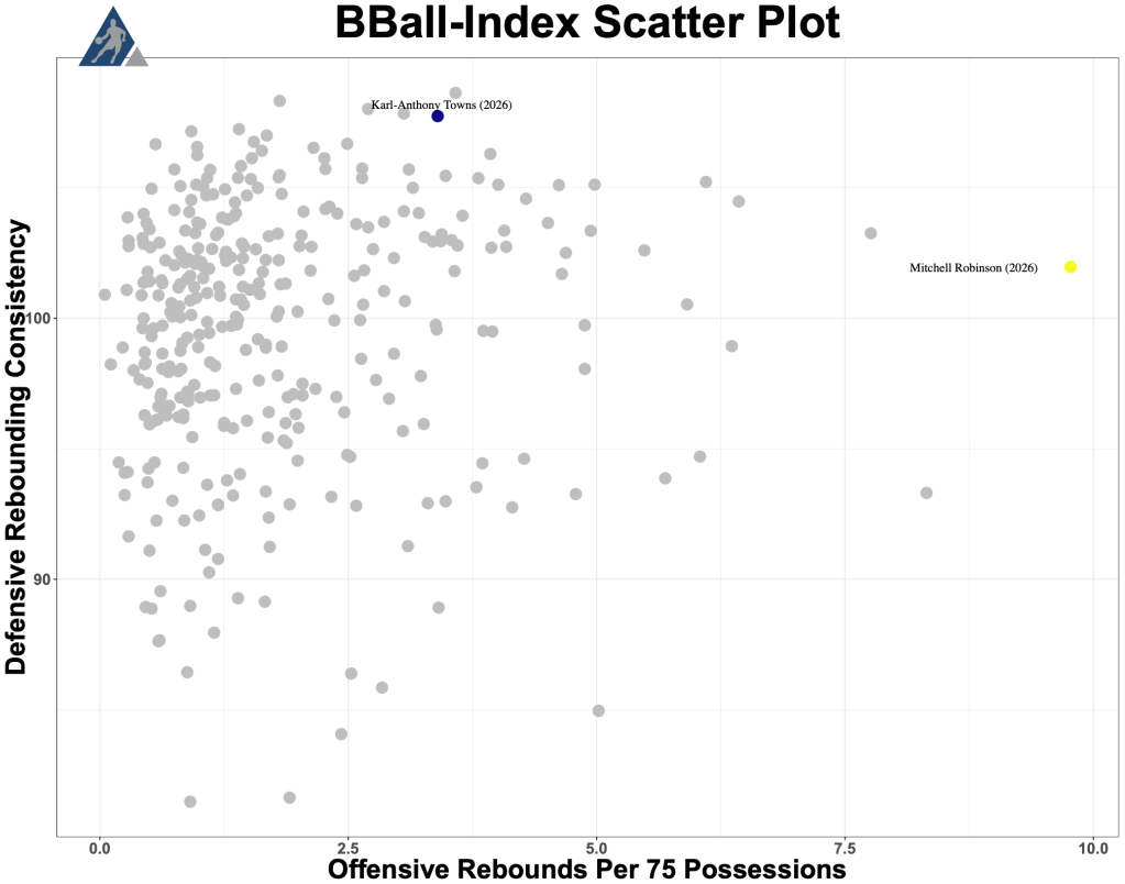 New York paired Brunson with All-Star center Karl-Anthony Towns. The former Timberwolf is widely considered the best shooting big man of all time and remains an elite scorer and rebounder. He averages 22 points and 12 rebounds while being highly efficient (61% TS%) and effective on the glass (4.0 contested rebounds per game).